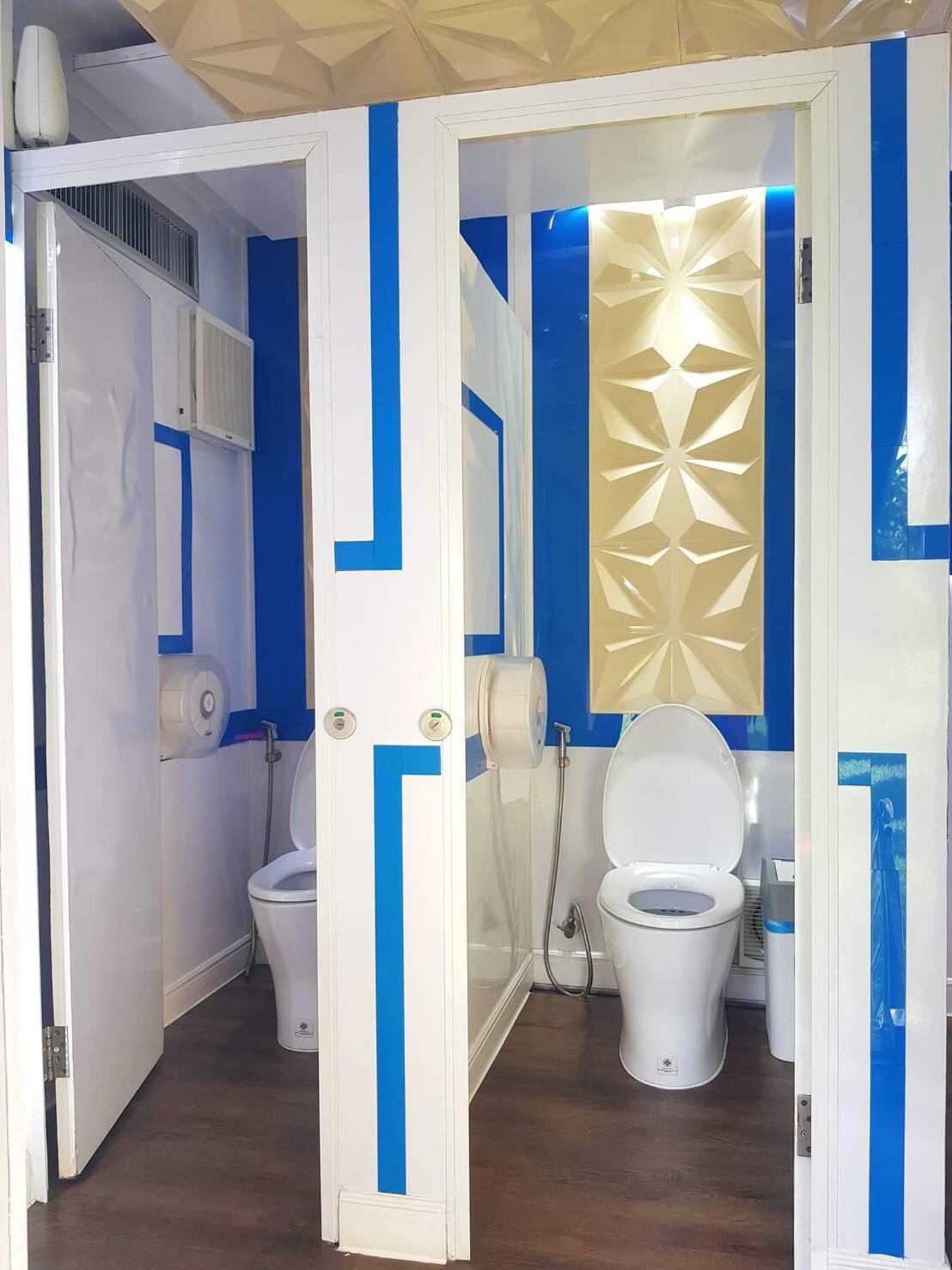 มี โถปัสสวะชาย 2-4 โถ ห้องน้ำหญิง 2-4 ห้อง ห้องน้ำชาย 2-4 ห้อง